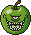 The bad apple is a green apple monster with one eye and a set of sharp teeth.