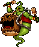 A green-skinned djinn with a red vest and a possessed bongo drum strapped to itself. It can use the drum to call for help or to buff its allies on the battlefield. It is not much of a threat as an early enemy, but can be an annoyance if left unchecked.