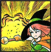 Acting the same as in previous appearances once again, it is learned by Jessica at level 23; however, the spell will start to grow in power once her wisdom surpasses 150 and if the stat reaches 200, the spell will deal 90~102 damage. It costs 8 MP to cast once again, and is also used by Volpones, Anchormen when they get serious, and Crayzees.