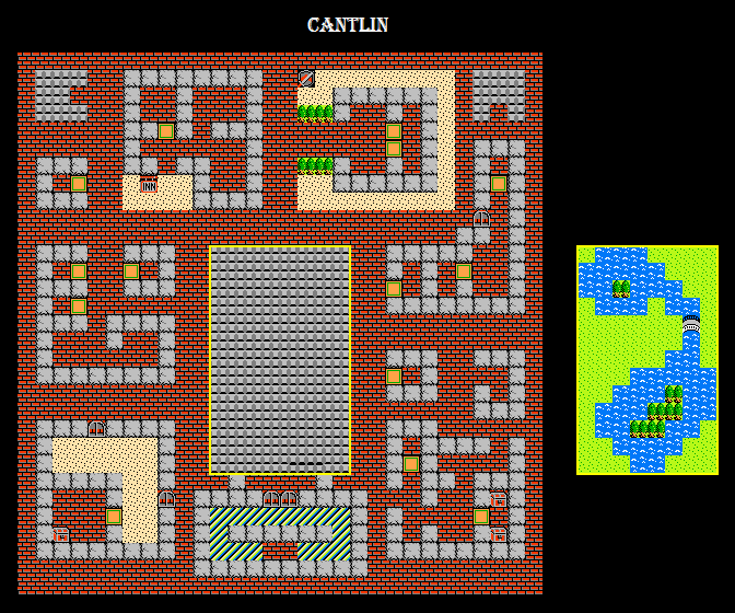 Surrounded by incredibly powerful and dangerous monsters, the fortress city of Cantlin is typically the last town the hero visits. Although visiting is optional, it is recommended, as Cantlin's shops sell some of the best equipment in the game.