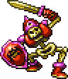 The Chasmonaut is a yellow skeletal soldier with red armor and a red tinted sword and shield.