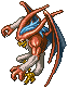 A dingbat is a red demon with white fur along the forearms. It has long blue hair, bird-like talons and black wings.