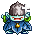 The Epipany is a teal blue imp wearing a blue priest's robe made of leaves. It also carries a cross.