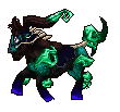 Equinox is a horse monster with green scales, brown fur and a set of dark blue hooves.