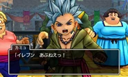 Erik is a combination of a fragile speedster and a glass cannon, being able to equip knives, one-handed swords, and boomerangs. He has low defence, but is extremely quick and can hit fairly hard while also sporting fairly good HP. His agility can reach arbitrator numbers in later levels to the point he can outrun the various metal slimes, making him good at killing them before they can flee. Befitting of a thief, Erik relies more on weakening foes with status ailments such as poison or sleep before dealing killing blows. Erik also has the potential to deal the highest amount of damage to a single target if one invests in his Guile and Knife skill trees. He also is the party member who specialises the best in the Dual wielding skill, which often makes up for his slightly lower power, especially with Knives, as he also can't equip most, if not all, shields.