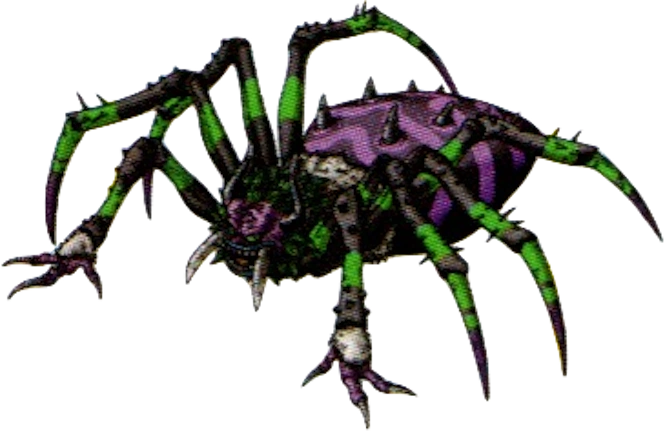 One of the Four Demon Generals under Demon Marshal Zerudorado, alongside Gullray Beast, Phantom General Fuzzma, and the sisters Belinda and Brenda. Disguised as a regular spider, Gejura hid on the body of King Moonis, and once the royal opened the way, he attempted to destroy the God's Scarlet Stone in Al-Agun's Pyramid, but was stopped by the Hero and Anlucia.