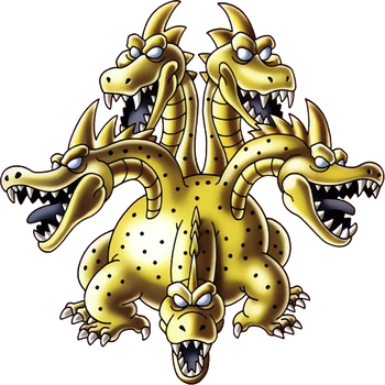 The GranDragon is a multi-headed dragon monster with yellow scales that are covered in dots.