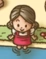 Lillian wears a red dress with a white shirt underneath. She has brown hair kept in two low buns. She also wears sandals.