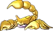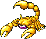 A simple scorpion with a soft body beneath a gold-hued exoskeleton. As a relatively early enemy, it is a strong creature with a slightly increased critical-hit rate and should not be taken lightly. As the player grows stronger, it poses far less of a threat. In later titles, it has inherited a venomous/paralysing sting and should be dealt with as soon as possible.