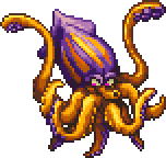 The tentacular is a squid monster with yellow tentacles and a lavender arrow-shaped crown on its head. Debuting as a hard-hitting nuisance of the open seas in Dragon Quest III, in later titles the tentacular is a far more fearsome foe, sweeping parties to the decks of their own ships with one swipe of its massive appendages.